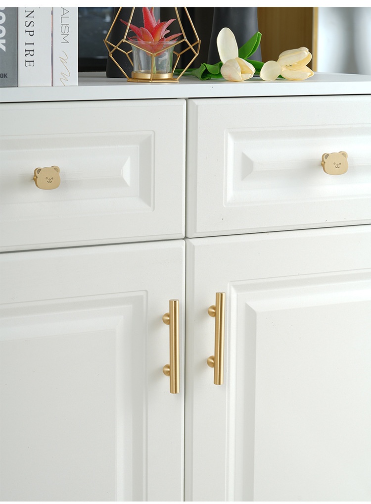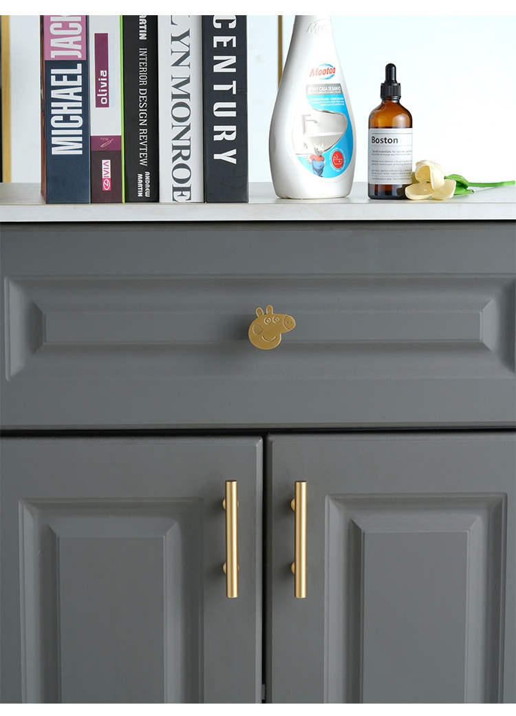 Pure Brass Solid Surface-mounted Single Long Hole Children's Cartoon Furniture Hardware Clothes And Shoes Kitchen Chest Of Drawer Door Handle